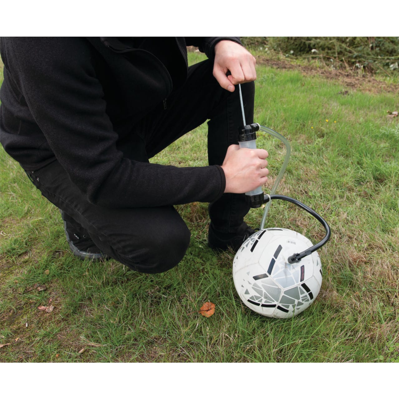 Includes: Hand-operated transfer pump, (2) 48 x 3/8 in. ID diameter clear view hoses, 15 in. air pressure hose, Snap-shut valve, Inflation needle