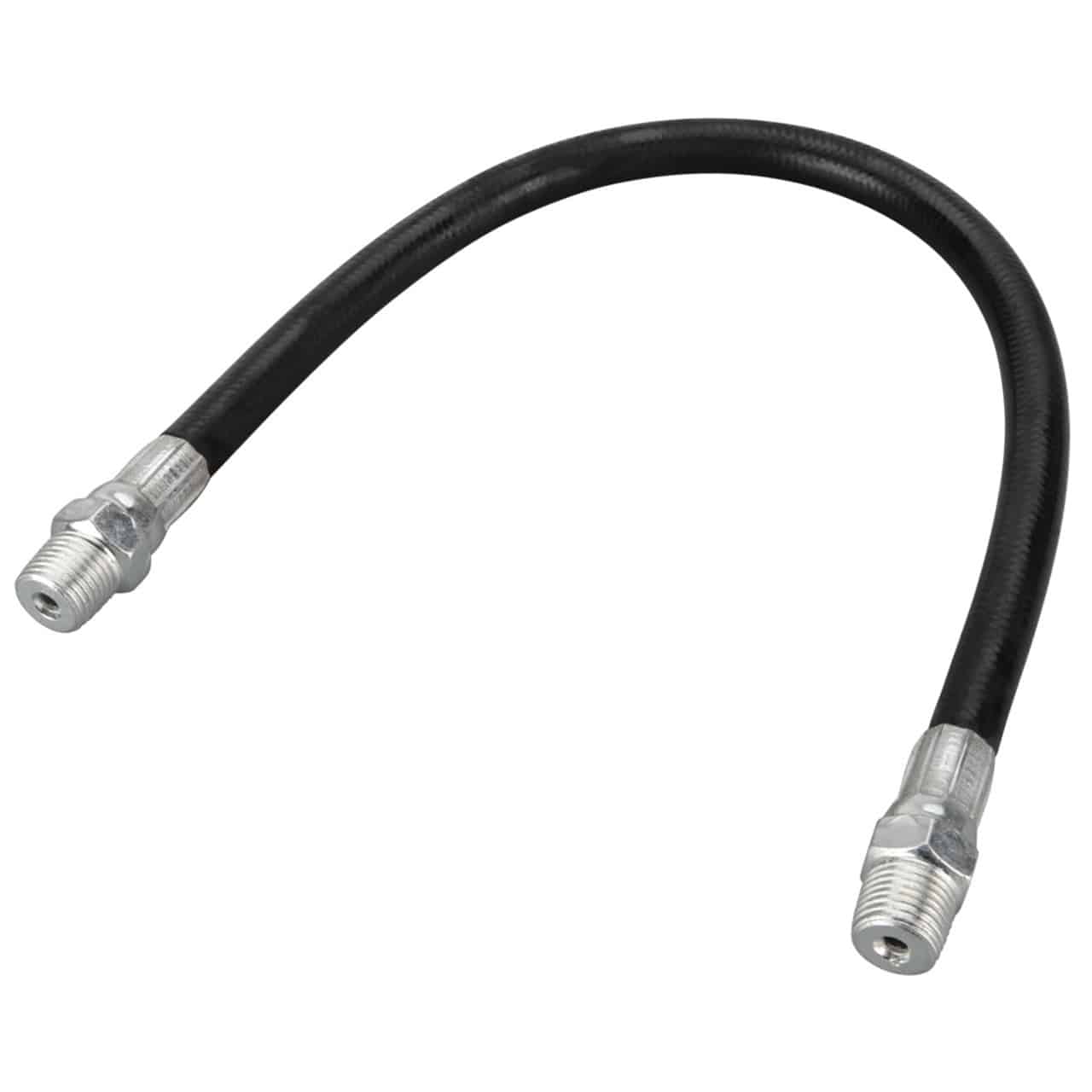 12-inch grease gun flex hose for hard-to-reach areas. Works with hand and air-powered grease guns.